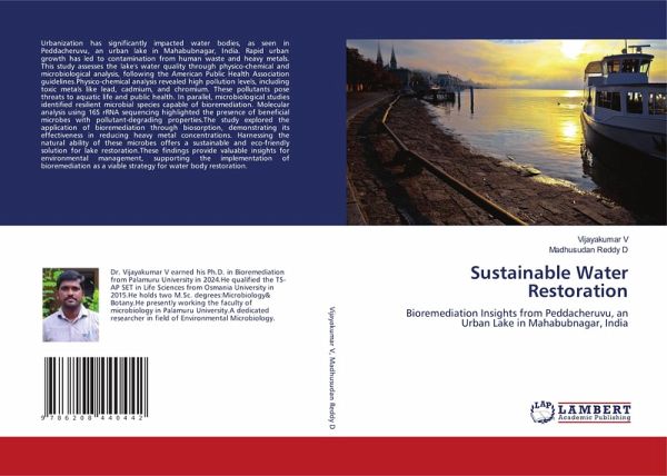 Urbanization has significantly impacted water bodies, as seen in Peddacheruvu, an urban lake in Mahabubnagar, India. Rapid urban growth has led to contamination from human waste and heavy metals. This study assesses the lake's water quality through physico-chemical and microbiological analysis, following the American Public Health Association guidelines.Physico-chemical analysis revealed high pollution levels, including toxic metals like lead, cadmium, and chromium. These pollutants pose threats to aquatic life and public health. In parallel, microbiological studies identified resilient microbial species capable of bioremediation. Molecular analysis using 16S rRNA sequencing highlighted the presence of beneficial microbes with pollutant-degrading properties.The study explored the application of bioremediation through biosorption, demonstrating its effectiveness in reducing heavy metal concentrations. Harnessing the natural ability of these microbes offers a sustainable and eco-friendly solution for lake restoration.These findings provide valuable insights for environmental management, supporting the implementation of bioremediation as a viable strategy for water body restoration.