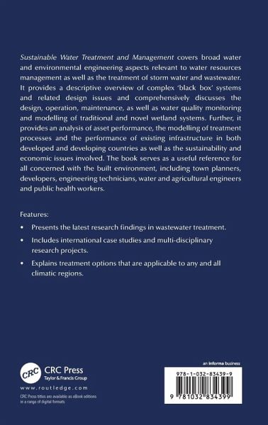 Sustainable Water Treatment and Management covers broad water and environmental engineering aspects relevant to water resources management as well as the treatment of storm water and wastewater. It provides a descriptive overview of complex 'black box' systems and related design issues and comprehensively discusses the design, operation, maintenance, as well as water quality monitoring and modelling of traditional and novel wetland systems. Further, it provides an analysis of asset performance, the modelling of treatment processes and the performance of existing infrastructure in both developed and developing countries as well as the sustainability and economic issues involved. The book serves as a useful reference for all concerned with the built environment, including town planners, developers, engineering technicians, water and agricultural engineers and public health workers.