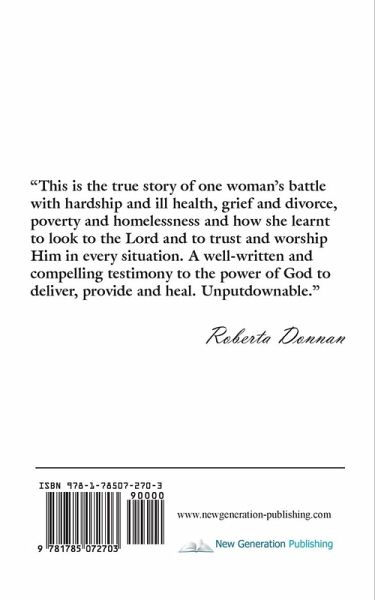 "This is the true story of one woman's battle with hardship and ill health, grief and divorce, poverty and homelessness and how she learnt to look to the Lord and to trust and worship Him in every situation. A well-written and compelling testimony to the power of God to deliver, provide and heal. Unputdownable." Roberta Donnan