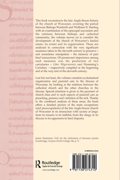 This book reconstructs the late Anglo-Saxon history of the church of Worcester, covering the period between Bishops Waerferth and Wulfstan II. Starting with an examination of the episcopal succession and the relations between bishops and cathedral community, the volume moves on to consider the development of the church of Worcester's landed estate, its extension, organization and pastoral care. In so doing the book offers a detailed picture of the main occupations (and preoccupations) of the late Anglo-Saxon church of Worcester in its interaction with society at large.