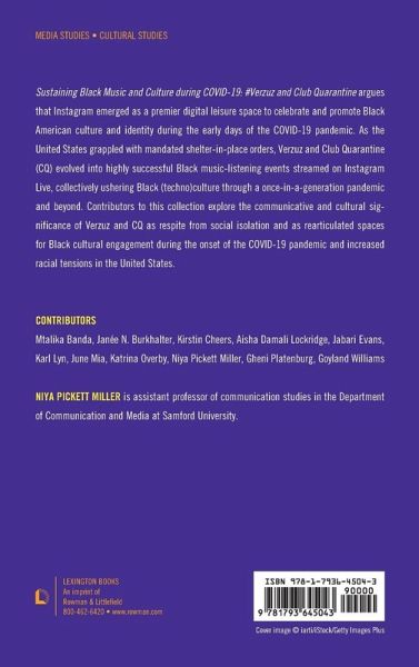Sustaining Black Music and Culture during COVID-19: #Verzuz and Club Quarantine argues that Instagram is a premier digital leisure space to celebrate and promote Black American culture and identity, particularly evidenced during the early days of the COVID-19 pandemic as the United States grappled with mandated shelter-in-place orders. Club Quarantine (CQ) and Verzuz emerged as highly successful Black music-listening events streamed on Instagram Live, collectively ushering Black (techno)culture through a once-in-a-generation pandemic and beyond. Contributors to this collection explore the communicative and cultural significance of these events as respite from social isolation and as a rearticulated space for Black cultural engagement in the midst of the COVID-19 pandemic and increased racial tensions in the United States.