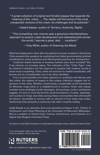 What has happened to cities after the global economic recession? Sustaining Cities answers this question by explaining how failed governmental policies contributed to urban problems and offering best practices for solving them. From social scientists and urban planners to architects and literary and film critics, the authors of this unique collection suggest real responses to this crisis. Could the drastic declines in housing markets have been avoided? Yes, if we reframe our housing values. Do you want to attract corporate investment to your town? You might want to think twice about doing so. The extinction of the “Celtic Tiger” may be charted in statistics, but the response in popular Irish mystery novels is much more compelling. China, while not immune to market vicissitudes, still booms, but at a considerable cost to its urban identities. Whether constructing a sustainable social framework for Mexican mega-cities or a neighborhood in London, these nine essays consider some strikingly similar strategies. And perhaps, as the contributors suggest, it’s time to look beyond the usual boundaries of urban, suburban, and exurban to forge new links among these communities that will benefit all citizens. Accessible to anyone with an interest in how cities cope today, Sustaining Cities presents a cautionary tale with a hopeful ending.