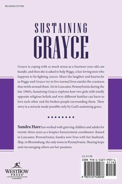 Grayce is coping with as much stress as a fourteen-year-old can handle, and then she is asked to help Peggy, a fun-loving teen who happens to be fighting cancer. Share the laughter and heartache as Peggy and Grayce try to live normal lives amidst the craziness that swirls around them. Set in Lancaster, Pennsylvania during the late 1960’s, Sustaining Grayce explores how two girls with totally opposite religious beliefs and very different families can learn to love each other and the broken people surrounding them. Their story is a miracle made possible only by God’s sustaining grace.
