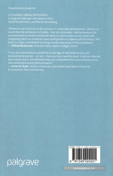 Foreword; A.Dobson Notes on the Contributors Introduction; J.Barry & M.Wissenburg PART I: LIBERALISM AND SUSTAINABILITY Sustainability, Liberal Democracy, Liberalism; M.de Geus Ecological Sustainability: A Private Case of Social Justice?; G.Talshir PART II: REFORM AND CHANGE Greening Liberal Democracy: Practice, Theory and Political Economy; J.Barry Democracy and Sustainability: Aspects of Efficiency, Legitimacy and Integration; N.Labaras Democracy, Justice and Risk Society: The Meaning and Shape of Ecological Democracy; W.Achterberg PART III: RIGHTS Constitutional Environmental Rights and Liberal Democracy; T.Hayward Privatising Genetic Resources: Biodiversity, Communities and Intellectual Property Rights; M.Oksanen Sustainability, Global Warming, Population Policies and Liberal Democracy; R.Attfield PART IV: DUTIES The Duties of Being and Association; M.Mills Virtue, Sustainability and Liberal Values; L.Beckman Sustainability and the Limits of Liberalism; M.Wissenburg Conclusion; J.Barry, M.Wissenburg & M.de Geus Bibliography Index
