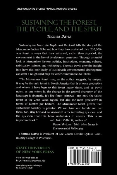 Sustaining the Forest, the People, and the Spirit tells the story of the Menominee Indian Tribe and how they have sustained their 230,000 acre forest in ways that have enhanced, rather than degraded, the environment in the face of development pressures. Through a careful look at Menominee history, politics, institutions, economy, culture, spirituality, science, and technology. Thomas Davis provides insight into how this case study of sustainable environmental development can offer a rough road map for other communities to follow.