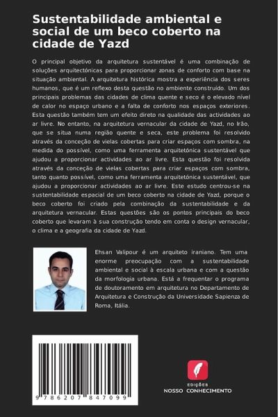 O principal objetivo da arquitetura sustentável é uma combinação de soluções arquitectónicas para proporcionar zonas de conforto com base na situação ambiental. A arquitetura histórica mostra a experiência dos seres humanos, que é um reflexo desta questão no ambiente construído. Um dos principais problemas das cidades de clima quente e seco é o elevado nível de calor no espaço urbano e a falta de conforto nos espaços exteriores. Esta questão também tem um efeito direto na qualidade das actividades ao ar livre. No entanto, na arquitetura vernacular da cidade de Yazd, no Irão, que se situa numa região quente e seca, este problema foi resolvido através da conceção de vielas cobertas para criar espaços com sombra, na medida do possível, como uma ferramenta arquitetónica sustentável que ajudou a proporcionar actividades ao ar livre. Esta questão foi resolvida através da conceção de vielas cobertas para criar espaços com sombra, tanto quanto possível, como uma ferramenta arquitetónica sustentável, que ajudou a proporcionar actividades ao ar livre. Este estudo centrou-se na sustentabilidade espacial de um beco coberto na cidade de Yazd, porque o beco coberto foi criado pela combinação da sustentabilidade e da arquitetura vernacular. Estas questões são os pontos principais do beco coberto que levaram à sua construção tendo em conta o design vernacular, o clima e a geografia da cidade de Yazd.
