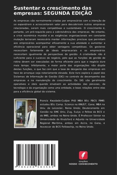 As empresas são normalmente criadas por empresários com a intenção de se expandirem e acrescentarem valor para descobrirem outras empresas relacionadas, serem mais competitivas e sustentáveis. O crescimento é, portanto, um pré-requisito para a sobrevivência das empresas. No entanto, a crise económica mundial e as exigências organizacionais em constante mutação tornaram necessário manter informações precisas que permitam aos empresários acompanhar eficazmente a sua atividade e aumentar a eficiência operacional para obter vantagens competitivas. Os gestores necessitam fortemente de ideais empresariais e os empresários necessitam igualmente de perspectivas de gestão. A criatividade não é suficiente para o sucesso do negócio, pelo que as funções de gestão de rotina devem ser executadas de forma eficiente para que o negócio dure mais tempo. Infelizmente, a maior parte das organizações não dispõe destas funções, o que faz com que a taxa de desgaste das empresas em fase de arranque seja notoriamente elevada. Este livro explora o papel dos Sistemas de Informação de Gestão (SIG) no controlo do desempenho das empresas e na manutenção do crescimento. Os SIG são geralmente operativos e úteis quando envolvem as actividades das pessoas, da tecnologia e da organização como uma entidade, e boas relações entre elas para a eficiência global do sistema.