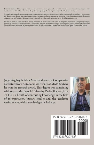 La idea de publicar el libro surge como tarea para reunir casos de interprete a los que asisti durante un periodo de tiempo muy concreto cuando ejercia esa labor. Eran situaciones de ayuda a extranjeros que hablaban poco o casi nada del idioma necesitado. Se trata de un compendio de visitas en las que se proporcionaron servicios linguisticos de traduccion, ayudando por un lado, a personas que por desconocer el idioma, necesitaban de apoyo para hacerse entender y comunicar sus problemas y, por el otro, proporcionando soporte colaborativo al staff medico o de psicologos que veian en la contribucion de un tercero mayor facilidad de diagnostico. Mi libro se centra en casos especificos, maneja el entorno de interaccion directa entre las tres partes involucradas (interprete-psicologo-paciente) y, se anaden asimismo opiniones y valoraciones por parte del interprete siempre desde un punto de vista intuitivo y facilitador. El dinamismo verbal se concreta en personajes necesitados de ayuda situacional. Un libro facil de leer y, buen apoyo de situaciones diarias.