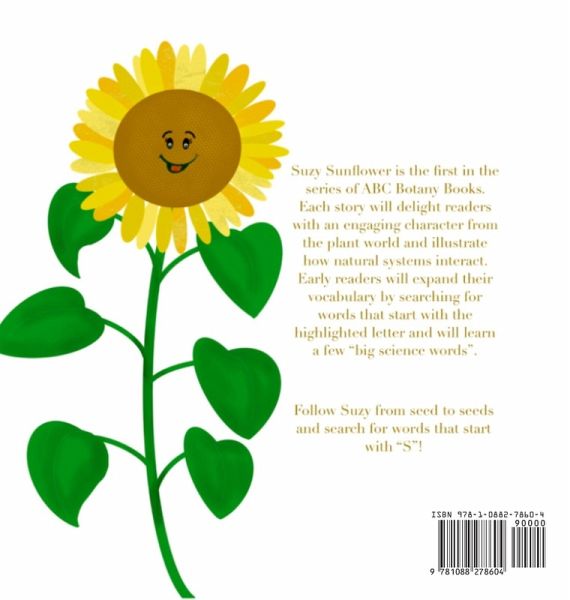 Suzy Sunflower is the first in the series of ABC Botany Books. Each story will delight young readers with an engaging character from the plant world and illustrate how natural systems interact. Readers will expand their vocabulary by searching for words that start with the highlighted letter and learning a few "big science" words. Follow Suzy from seed to seeds. Search for words that start with the letter "S"!