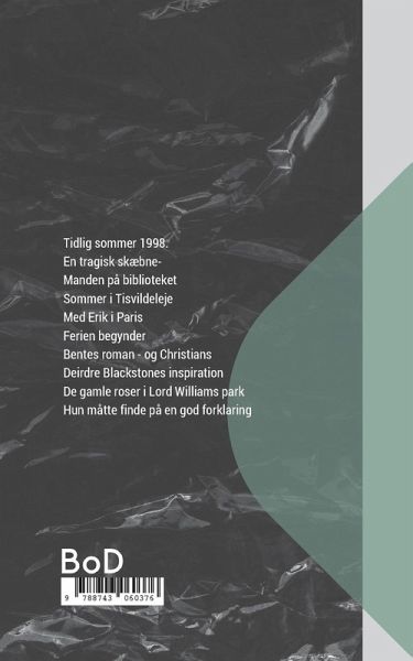 Tidlig sommer 1998. En tragisk skæbne- Manden på biblioteket Sommer i Tisvildeleje Med Erik i Paris Ferien begynder Bentes roman - og Christians Deirdre Blackstones inspiration De gamle roser i Lord Williams park Hun måtte finde på en god forklaring