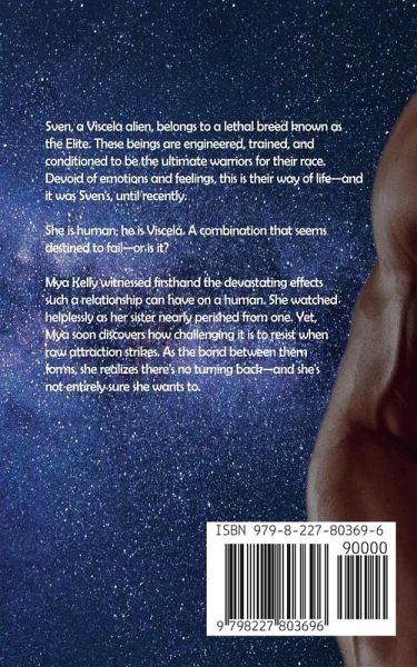 Sven, a Viscela alien, belongs to a lethal breed known as the Elite. These beings are engineered, trained, and conditioned to be the ultimate warriors for their race. Devoid of emotions and feelings, this is their way of life-and it was Sven's, until recently. She is human; he is Viscela. A combination that seems destined to fail-or is it? Mya Kelly witnessed firsthand the devastating effects such a relationship can have on a human. She watched helplessly as her sister nearly perished from one. Yet, Mya soon discovers how challenging it is to resist when raw attraction strikes. As the bond between them forms, she realizes there's no turning back-and she's not entirely sure she wants to.