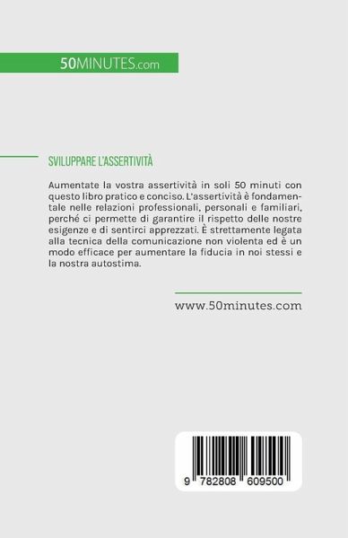 Aumentate la vostra assertività in soli 50 minuti con questo libro pratico e conciso. L'assertività è fondamentale nelle relazioni professionali, personali e familiari, perché ci permette di garantire il rispetto delle nostre esigenze e di sentirci apprezzati. È strettamente legata alla tecnica della comunicazione non violenta ed è un modo efficace per aumentare la fiducia in noi stessi e la nostra autostima. In questo libro imparerete esattamente cos'è l'assertività e perché è importante. Include anche consigli su come comunicare in modo chiaro ed efficace, nonché le regole d'oro da seguire e le insidie da evitare quando si lavora per essere più assertivi.