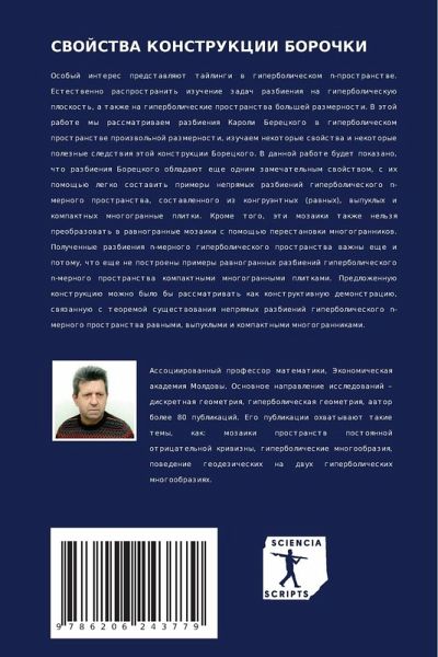 Osobyj interes predstawlqüt tajlingi w giperbolicheskom n-prostranstwe. Estestwenno rasprostranit' izuchenie zadach razbieniq na giperbolicheskuü ploskost', a takzhe na giperbolicheskie prostranstwa bol'shej razmernosti. V ätoj rabote my rassmatriwaem razbieniq Karoli Bereckogo w giperbolicheskom prostranstwe proizwol'noj razmernosti, izuchaem nekotorye swojstwa i nekotorye poleznye sledstwiq ätoj konstrukcii Boreckogo. V dannoj rabote budet pokazano, chto razbieniq Boreckogo obladaüt esche odnim zamechatel'nym swojstwom, s ih pomosch'ü legko sostawit' primery neprqmyh razbienij giperbolicheskogo n-mernogo prostranstwa, sostawlennogo iz kongruäntnyh (rawnyh), wypuklyh i kompaktnyh mnogogrannye plitki. Krome togo, äti mozaiki takzhe nel'zq preobrazowat' w rawnogrannye mozaiki s pomosch'ü perestanowki mnogogrannikow. Poluchennye razbieniq n-mernogo giperbolicheskogo prostranstwa wazhny esche i potomu, chto esche ne postroeny primery rawnogrannyh razbienij giperbolicheskogo n-mernogo prostranstwa kompaktnymi mnogogrannymi plitkami. Predlozhennuü konstrukciü mozhno bylo by rassmatriwat' kak konstruktiwnuü demonstraciü, swqzannuü s teoremoj suschestwowaniq neprqmyh razbienij giperbolicheskogo n-mernogo prostranstwa rawnymi, wypuklymi i kompaktnymi mnogogrannikami.