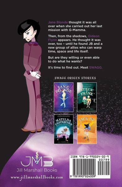 Online conferencing organisation, HOST, have figured out how to livestream the World Community Games across the planet. The whole world sits up and takes notice. And so do some people who are out-of-this-world ... Like Janey Brown, aka Jane Blonde. She'd thought her spy life all over when she carried out her last mission iwith the irrepressible SPI:KE, G-Mamma, until one day, from the shadows, Gideon Flynn appears. He's building a team to uncover what HOST are really up to - and to carry out some secret missions of his own. Together, they track down some unusual superheroes. Jack Bootle-Cadogan - Jack BC, or Anubis, to his friends. Matilda Peppercorn, legendary kickboxer with fabulous feline skills. And Prince Stein of the Huckenbeck dynasty, who's very old and very young, all at the same time. And the adventure begins. But are the team willing or even able to do what Flynn wants? It's time to find out. Meet SWAGG. SWAGG 1 - Spook, is the first in the ensemble series from best-selling author, Jill Marshall. Meet all the characters here on their first team adventure, and then follow the four origin stories to deep-dive into your favourite teen superteam: Jane Blonde, Sensational Spylet; Jack B-C, Doghead; The Legend of Matilda Peppercorn;, and Stein & Frank