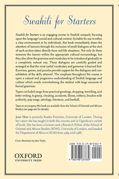 first. Games and puzzles and other activities are used to give practice in the language and guidance in punctuation. This book teaches Swahili in its social and cultural context. It introduces the language in a natural manner, beginning with real-life situations in dialogue form, many of which also reveal African cultural attitudes and societal ideas to the reader. Grammar and vocabulary are introduced gradually, along with necessary pronunciation guides.