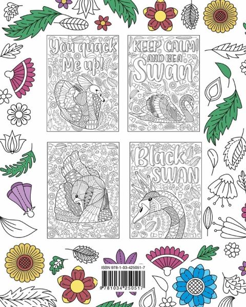 It's was made for Swan addicts, by Swan addicts, or someone who just likes to relax coloring. Swan in floral and mandala style with heartwarming quotes. Makes the perfect gift for your friends who are swan lover. This book has a total of 42 pages, contains 1 inner cover, 10 different designs with a copy for two chances to coloring, and 21 blank pages for your freestyle drawing.