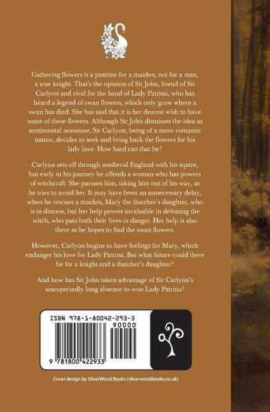 Gathering flowers is a pastime for a maiden, not for a man, a true knight. That's the opinion of Sir John, friend of Sir Carlyon and rival for the hand of Lady Patrina, who has heard a legend of swan flowers, which only grow where a swan has died. She has said that it is her dearest wish to have some of these flowers. Although Sir John dismisses the idea as sentimental nonsense, Sir Carlyon, being of a more romantic nature, decides to seek and bring back the flowers for his lady love. How hard can that be? Carlyon sets off through medieval England with his squire, but early in his journey he offends a woman who has powers of witchcraft. She pursues him, taking him out of his way, as he tries to avoid her. It may have been an unnecessary delay, when he rescues a maiden, Mary the thatcher's daughter, who is in distress, but her help proves invaluable in defeating the witch, who puts both their lives in danger. Her help is also there as he hopes to find the swan flowers. However, Carlyon begins to have feelings for Mary, which endanger his love for Lady Patrina. But what future could there be for a knight and a thatcher's daughter? And how has Sir John taken advantage of Sir Carlyon's unexpectedly long absence to woo Lady Patrina?