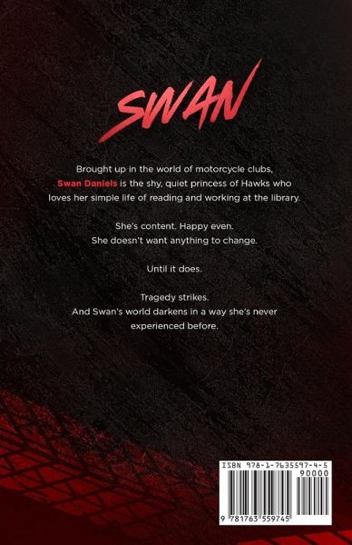Brought up in the world of motorcycle clubs, Swan Daniels is the shy, quiet princess of Hawks who loves her simple life of reading and working at the library. She's content. Happy even. She doesn't want anything to change. Until it does. Tragedy strikes. And Swan's world darkens in a way she's never experienced before