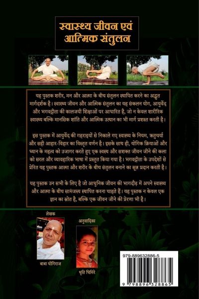 This book is a guide to achieving a harmonious, healthy, and spiritually enriched life. Written by a renowned yoga teacher and Panchagavya Ayurveda expert from Nepal, it shares the author's lifelong experiences and wisdom for the benefit of society. Blending teachings from Yoga, Ayurveda, and the Bhagavad Gita, the book offers practical methods for physical health, mental peace, and spiritual balance. It inspires readers to embrace inner harmony and a fulfilling life. Discover practical tips, insights into inner peace, and answers to life's profound questions in this inspiring guide for achieving balance and well-being. Inside, you will find practical methods to balance your life, insights into achieving inner peace, and answers to some of life's profound questions. This book is an inspiring guide for anyone seeking spiritual tranquility, inner harmony, and a healthier lifestyle. If you are on a quest for stability, balance, and harmony in life, this book is your perfect companion.
