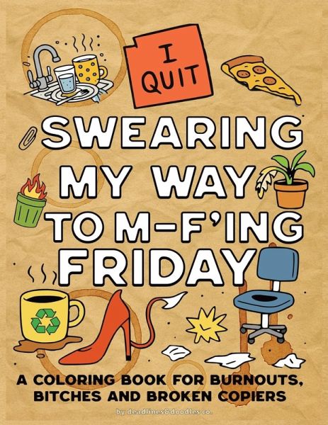 A sweary adult coloring book for corporate burnouts, overworked professionals, and sarcastic coworkers. Features NSFW quotes, workplace humor, and colorable office chaos.