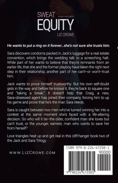 He wants to put a ring on it forever...she's not sure she trusts him. Sara discovers condoms packed in Jack's luggage for a real estate convention, which brings the wedding talk to a screeching halt. While part of her wants to believe that they're remnants from an earlier life, that she and the former playboy have taken the right next step in their relationship, another part of her can't-or won't-trust him. Jack wants to prove himself trustworthy. But his own self-doubt gets in the way and before he knows it, they're back to square one and "taking a break." It doesn't help that Craig, a new, Sara-obsessed agent has joined their company, forcing him to up his game and prove that he's the man Sara needs. Sara is caught between two men who've turned winning her into a contest at the same moment she's faced with a life-altering decision. So who will it be-the older, confident man she loves but can't trust, or the younger, earnest, man who wants to save her from herself? Love triangles heat up and get real in this cliff-hanger book two of the Jack and Sara Trilogy.