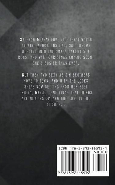 Saffron Dean's love life isn't worth talking about. Instead, she throws herself into the small bakery she runs, and with Christmas coming soon, she's busier than ever. But then two sexy as sin new neighbours move to town, and with the looks she's now getting from her best friend, Daniel, she finds that things are heating up, and not just in the kitchen… Includes one talented baker, three hot men, and a f***tonne of frosting. (Grandma, I suggest you skip this one)