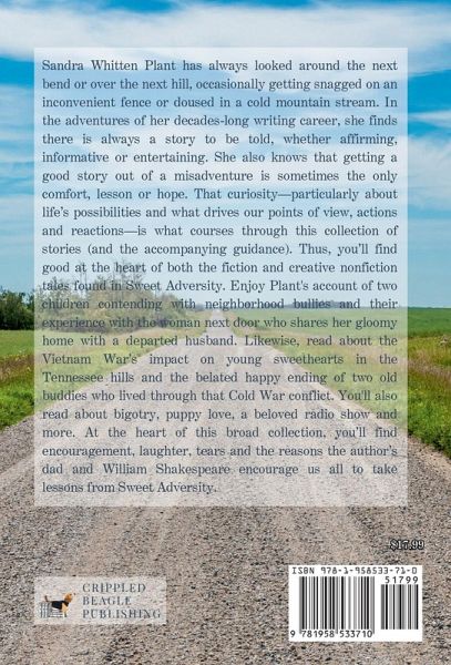Sandra Whitten Plant has always looked around the next bend or over the next hill, occasionally getting snagged on an inconvenient fence or doused in a cold mountain stream. In the adventures of her decades-long writing career, she finds there is always a story to be told, whether affirming, informative or entertaining. She also knows that getting a good story out of a misadventure is sometimes the only comfort, lesson or hope. That curiosity-particularly about life's possibilities and what drives our points of view, actions and reactions-is what courses through this collection of stories (and the accompanying guidance). Thus, you'll find good at the heart of both the fiction and creative nonfiction tales found in Sweet Adversity. Enjoy Plant's account of two children contending with neighborhood bullies and their experience with the woman next door who shares her gloomy home with a departed husband. Likewise, read about the Vietnam War's impact on young sweethearts in the Tennessee hills and the belated happy ending of two old buddies who lived through that Cold War conflict. You'll also read about bigotry, puppy love, a beloved radio show and more. At the heart of this broad collection, you'll find encouragement, laughter, tears and the reasons the author's dad and William Shakespeare encourage us all to take lessons from Sweet Adversity. Sandra Whitten Plant has been writing articles and stories for many years. Her favorite creative writing form is the short story, a genre that requires keen observation and economy of words. She believes that each well-written short story is like a precious jewel. She has written articles for magazines and newspapers for many years. Her work of both fiction and nonfiction has been published in anthologies, but Sweet Adversity is her first book. She has taught creative writing in schools and workshops since 1975. For the past five years, she has led a workshop called Telling Your Story in a community-based program called Joy in Learning in Nashville, Tennessee. Sandra Whitten Plant was born in Birmingham, Alabama, in 1941, and moved with her family to Oak Ridge, Tennessee, at the age of nine. She studied at the University of Georgia and at the University of Tennessee. She has a B.S. degree in journalism. After a thirty-four-year career in public and community relations, she retired in 2007 from Bechtel National, Inc. She is a resident of Nashville, Tennessee.