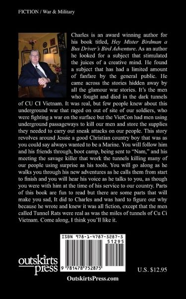 Charles is an award winning author for his book titled, Hey Mister Birdman a Bus Driver's Bird Adventure. As an author he looked for a subject that stimulated the juices of a creative mind. He found a subject that has had a limited amount of fanfare by the general public. He came across the stories hidden away by all the glamour war stories. It's the men who fought and died in the dark tunnels of CU CI Vietnam. It was real, but few people knew about this underground war that raged on out of site of our soldiers, who were fighting a war on the surface but the VietCon had men using underground passageways to kill our men and store the supplies they needed to carry out sneak attacks on our people. This story revolves around Jessie a good Christian country boy that was as you could say always wanted to be a Marine. You will follow him and his friends through, boot camp, being sent to "Nam," and his meeting the savage killer that work the tunnels killing many of our people using surprise as his tools. You will go along as he walks you through his new adventures as he calls them from start to finish and you will hear his voice as he talks to you, as though you were with him at the time of his service to our country. Parts of this book are fun to read but there are some parts that will make you sad, It did to Charles and was hard to figure out why because he wrote and knew it was all fiction, except that the men called Tunnel Rats were real as was the miles of tunnels of Cu Ci Vietnam. Come along, I think you'll like it.