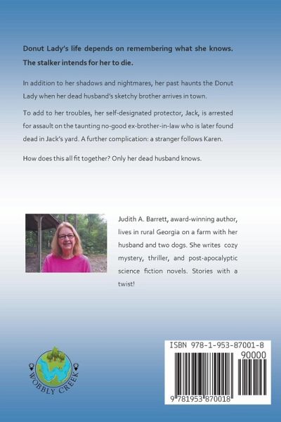 Donut Lady's life depends on her memories of her conniving ex-husband. The silent stalker intends for her to die. The past haunts the Donut Lady when her dead husband's sketchy brother arrives in town. He had blocked her appeal for her conviction of the murder of her manipulative ex-husband. What's he doing in her hometown? To add to her troubles, her self-designated protector, Jack, is arrested for assault on the taunting, no-good ex-brother-in-law who is later found dead in Jack's yard. Where does a counterfeiter fit in the puzzle? Only the dead husband knows.