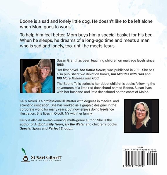 Do dogs have sweet dreams? Boone does! Snuggle up next to Boone on this heartwarming journey with "Sweet Dreams, Boone" by acclaimed author Susan Grant., a classroom teacher for thirty-eight years and a graduate of Columbia International University. This adorable story is perfect for young readers aged 3-8, an enchanting bedtime story is a delightful addition to any family's library. Join Boone, the lovable dog, as he drifts off into a dream world where he encounters a blind man in need of companionship. Through their touching interaction, Boone helps him find Jesus who can help heal the blind man. Boone learns a valuable lesson about friendship and the importance of never feeling alone, even in the darkest of times. With its captivating storyline and charming illustrations, "Sweet Dreams, Boone" is ideal for early readers and pet-loving families alike. This touching tale not only entertains but also instills important values of empathy and kindness in young hearts. Curl up with your little ones and immerse yourselves in the imaginative world of "Sweet Dreams, Boone" - a heartwarming tale of pets, dreams, and the enduring power of friendship. Don't miss out on this enchanting bedtime adventure that will warm your heart and inspire young minds!