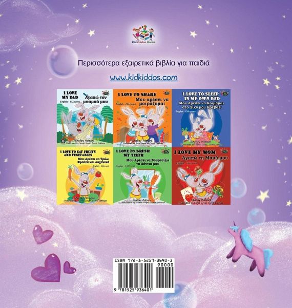 Sweet Dreams, My Love (Greek edition). It's time for bed, but Alice doesn't want to go to sleep just yet. By going through her bedtime routine, Mom calms her daughter down by reminding her of all the wonderful things they did together that evening. Written in a soft and soothing manner, this book shows the warm and loving relationship between Alice and her mom, while preparing young readers for a good night's sleep.