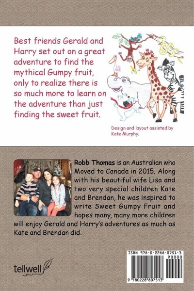 Robb Thomas is an Australian who moved to Canada in 2015. Along with his beautiful wife Lisa and two very special children Kate and Brendan, he was inspired to write Sweet Gumpy Fruit and hopes many, many more children will enjoy Gerald and Harry's adventures as much as Kate and Brendan did.