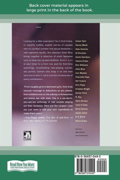 Looking for a little inspiration? You'll find it here, in expertly crafted, explicit stories of couples who try out their number one sexual fantasies - with explosive results. Sex educator Violet Blue brings together a collection of erotic fantasies sure to keep you up past bedtime. Sweet Life is your ticket to a front row seat for first-time spankings, breathtaking role-playing scenes, sex parties, women who strap it on and men who love to take it, not to mention threesomes of every combination.