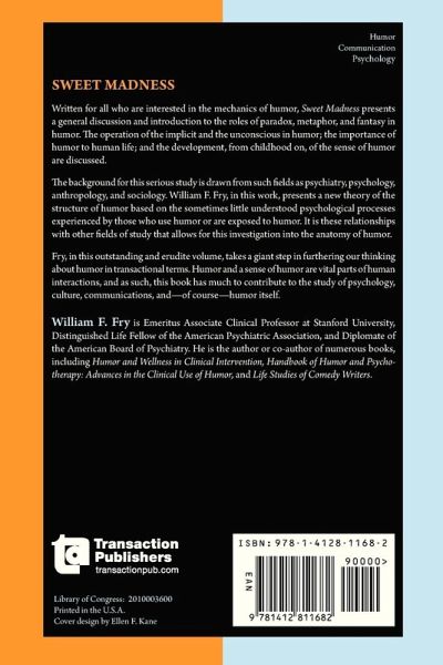 Written for all who are interested in the mechanics of humor, Sweet Madness presents a general discussion and introduction to the roles of paradox, metaphor, and fantasy in humor. The operation of the implicit and the unconscious in humor; the importance of humor to human life; and the development, from childhood on, of the sense of humor are discussed.