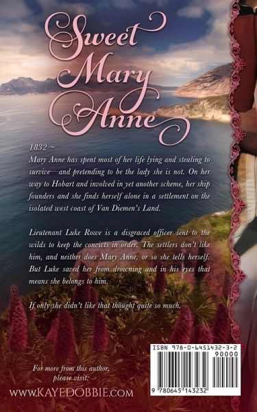 1832. Mary Anne has spent most of her life lying and stealing to survive-and pretending to be the lady she is not. On her way to Hobart and involved in yet another scheme, her ship founders and she finds herself alone in a settlement on the isolated west coast of Van Diemen's Land. Lieutenant Luke Rowe is a disgraced officer sent to the wilds to keep the convicts in order. The settlers don't like him, and neither does Mary Anne, or so she tells herself. But Luke saved her from drowning and in his eyes that means she belongs to him. But is Luke really the man he seems, and is Mary Anne making a grave mistake in trusting him with her heart?