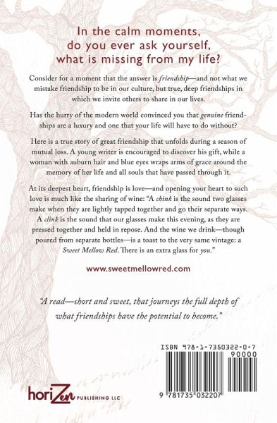 A read-short and sweet, that journeys the full depth of what friendships have the potential to become. This writing is a celebration of life and true friendship; we are all invited to share in the toast. A youthful writer discovers, in the life story of an older lady, the artisan creation of vintage wine. The woman with red hair and blue eyes becomes a friend to the young man, and he recognizes in her a pouring of grace into the lives of others, those in need of nourishment-mind and soul. The scenes of her life come alive as green vines climbing upward, sweet fruits cultivated by rich soil, and an ageless, mellow red wine that finds a richness devoid of regret. Grab a glass! The best pairing for this book is a glass of wine.