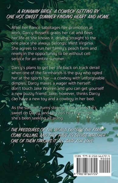 A runaway bride. A cowboy getting by. One hot, sweet summer finding heart and home. After her fiancé sabotages her promotion at work, Darcy Rossetti grabs her cat and flees her life as she knows it, driving straight to the one place she always belongs: West Virginia. She agrees to run her family's peach farm and revels in the opportunity to be without cell service for an entire summer. Darcy's plans to get her life back on track derail when one of the farmhands is the guy who ogled her at the sports bar-a cowboy with unforgivable dimples. Darcy makes a wager with herself: don't touch Jake Warren and you can get yourself a new buzzy friend. Jake, however, thinks Darcy can have a new toy and a cowboy in her bed. As the summer turns steamy, Jake proves he's sweet on Darcy, and perhaps he's the home she's been seeking all along. The pressures of the world outside the farm come calling, and they have to decide whether one of them throws it all away for love. What to expect: Cowboy romance Runaway bride Returning to hometown Small town Sick/hurt comfort Black cat x golden retriever Forced proximity Sweet on You is a spicy small town romance between a cowboy and a runaway bride.