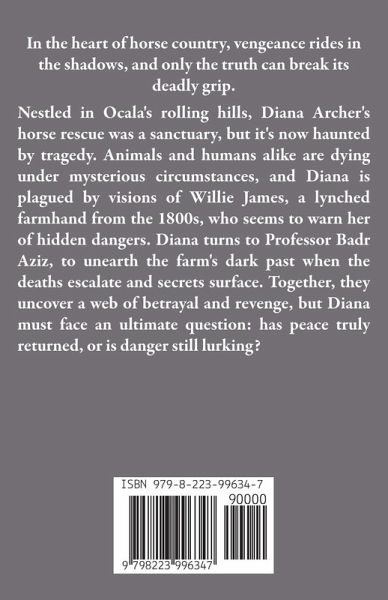 Nestled in the heart of Ocala's rolling hills, the Ocala Thoroughbred Rescue and Rehab is a sanctuary for horses in need. To Diana Archer, it's more than that; it's her life's work, a refuge for the broken and abandoned. Alongside her daughter, Charlotte, her son-in-law, Blake, and her close-knit board, Diana has transformed the farm into a thriving, peaceful retreat for horses and people alike. But lately, that peace has been shattered. First, Diana experiences an unsettling presence, one that hovers just beyond her sight. The ghost of Willie James, a man lynched on the land more than a century ago, has made himself known to her. His restless spirit seems to haunt the farm, shadowing Diana as she goes about her days and slipping into her dreams at night. His appearances come with an urgency, a warning Diana doesn't yet fully understand, but her unease grows as strange tragedies unfold on the farm. A beloved horse is found dead under mysterious circumstances, then a loyal farm dog meets the same fate. Rumors stir among the staff, whispers of accidents that feel far too deliberate, and tensions among the board members begin to fray. Next, the farm's hay barn is consumed in a raging fire, leaving them short of essential resources and overwhelmed by fear. Worst of all, Ava Kirk, the farm's longtime attorney and Diana's trusted friend, is found dead under horrifying circumstances. The news of Ava's death sends shockwaves through the farm, especially when it's revealed that Ava was having a clandestine affair with Victor Martinez, the farm's veterinarian, both of them married, but to other people. With the mounting tragedies, the farm's core is thrown into turmoil, and doubts creep into even the strongest of relationships. Diana is haunted not only by Willie's spirit but by the possibility that someone on the farm may be harboring dark secrets. The presence of the ghost becomes a grim warning, urging Diana to uncover the truth before more lives are lost. Suspicion gnaws at the board as they reel from the loss of Ava and the shocking revelation of her affair with Victor. The farm, once a sanctuary, feels poisoned by secrets, betrayal, and the constant threat of more violence. Desperate for answers and determined to restore peace, Diana turns to Badr Aziz, an archeology professor from the University of Florida. Badr, a man with a mystery of his own, agrees to help. Together, he, Olivia, the farm's marketing director, and Diana uncover a surprising connection between Ava and the land's dark history, a connection that runs deeper than anyone suspected. As they investigate, Willie's ghost grows more insistent, and they begin to realize that the tragedies surrounding the farm may have been his attempts to communicate the truth. When Badr locates Willie's bones, buried in a forgotten corner of the farm, they understand at last what Willie's spirit has been trying to reveal. In an ultimate act of justice, Willie's bones are laid to rest alongside Ava's in the family cemetery, and with that, the tragedies cease. The haunting ends, and a tentative peace settles back over the farm. But as Diana stands over the graves, the weight of everything they've endured presses down on her, and she wonders: is it truly over, or are there still shadows waiting to be unearthed? "Sweet Revenge" is a haunting story of murder, mystery, and betrayal, set against the vivid backdrop of Florida's horse country, where secrets buried in the past resurface with chilling consequences.