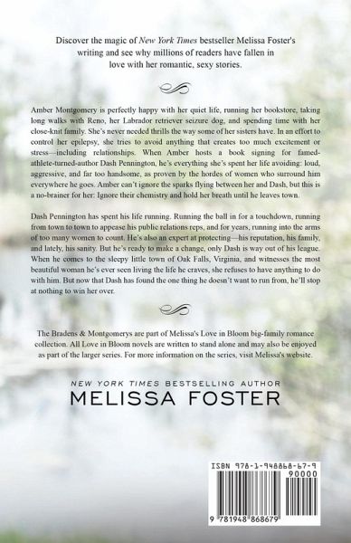 Discover the magic of New York Times bestseller Melissa Foster's writing and see why millions of readers have fallen in love with the fiercely loyal and sassily sexy characters in the Love in Bloom big-family romance collection. All Love in Bloom books can be enjoyed as stand-alone novels or as part of the larger series. ¿For this sweet bookstore owner, avoiding the charms of a famed-football-player-turned-author was supposed to be easy... Funny, sinfully sexy, opposite-attracts romance. In SWEET, SEXY HEART... Amber Montgomery is perfectly happy with her quiet life. She loves running her bookstore, taking long walks with Reno, her Labrador retriever seizure-response dog, and spending time with her close-knit family. She's never needed thrills the way some of her sisters have. In an effort to control her epilepsy, she tries to avoid anything that creates too much excitement or stress-including relationships. When Amber hosts a book signing for famed-athlete-turned-author Dash Pennington, he's everything she's spent her life avoiding: loud, aggressive, and far too handsome, as proven by the hordes of women who surround him everywhere he goes. Amber can't ignore the sparks flying between her and Dash, but this is a no-brainer for her: Ignore their chemistry and hold her breath until he leaves town. Dash Pennington has spent his life running. Running the ball in for a touchdown, running from town to town to appease his public relations reps, and for years, running into the arms of too many women to count. He's also an expert at protecting-his reputation, his family, and lately, his sanity. But he's ready to make a change. When he comes to the sleepy little town of Oak Falls, Virginia, and witnesses the most beautiful woman he's ever seen living the life he craves, she refuses to have anything to do with him. But now that Dash has found the one thing he doesn't want to run from, he'll stop at nothing to win her over. ** Within the Love in Bloom big-family romance collection, characters from each sub-series appear in future books. Snow Sisters The Bradens at Weston The Bradens at Trusty The Bradens at Peaceful Harbor The Bradens & The Montgomerys The Remingtons The Ryders Seaside Summers Bayside Summers Steeles at Silver Harbor Wild Billionaires After Dark Bad Billionaires After Dark Harborside Nights Tru Blue and The Whiskeys: Dark Knights at Peaceful Harbor The Wickeds: Dark Knights at Bayside Sugar Lake Harmony Pointe Silver Harbor