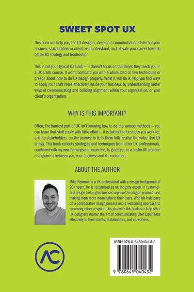 A Sweet Spot UX designer knows how to balance the needs of users with the business goals of an organisation. This is the key to providing real value to any product or service. The hardest part of being a User Experience Designer isn't learning the methodology or the process, it's taking the business you work for on the journey to fully realise the value that it brings. Evangelizing your UX process as well as doing the day-to-day work can sometimes seem like an insurmountable challenge. This UX book is a collection of strategies and techniques from experienced industry professionals about communicating the value of UX to stakeholders and decision makers to help you gain and maintain buy-in of your work. Who should read this book? This user experience book is for new and experienced UX designers, digital product designers and web design professionals who want to create better alignment between their users and their organisation and convert their co-workers into UX advocates.