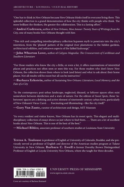 Contributions by Carrie Bernhard, Scott Bernhard, Marilyn R. Brown, Richard Campanella, John P. Clark, Joel Dinerstein, Pableaux Johnson, John P. Klingman, Angel Adams Parham, Bruce Boyd Raeburn, Ruth Salvaggio, Christopher Schaberg, Teresa A. Toulouse, and Beth Willinger Much has been written about New Orleans's distinctive architecture and urban fabric, as well as the city's art, literature, and music. There is, however, little discussion connecting these features. Sweet Spots--a title drawn from jazz musicians' name for the space "in-between" performers and dancers where music best resonates--provides multiple connections between the city's spaces, its complex culture, and its future. Drawing on the late Tulane architect Malcolm Heard's ideas about "interstitial" spaces, this collection examines how a variety of literal and represented "in-between" spaces in New Orleans have addressed race, class, gender, community, and environment. As scholars of architecture, art, African American studies, English, history, jazz, philosophy, and sociology, the authors incorporate materials from architectural history and practice, literary texts, paintings, drawings, music, dance, and even statistical analyses. Interstitial space refers not only to functional elements inside and outside of many New Orleans houses--high ceilings, hidden staircases, galleries, and courtyards--but also to compelling spatial relations between the city's houses, streets, and neighborhoods. Rich with visual materials, Sweet Spots reveals the ways that diverse New Orleans spaces take on meanings and accrete stories that promote certain consequences both for those who live in them and for those who read such stories. The volume evokes, preserves, criticizes, and amends understanding of a powerful and often-missed feature of New Orleans's elusive reality.