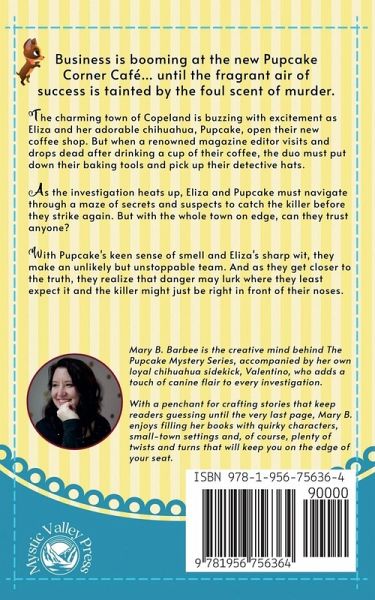 Business is booming at the new Pupcake Corner Café... until the fragrant air of success is tainted by the foul scent of murder. Get ready to sink your teeth into a deliciously suspenseful tale of murder, mystery, and fur-tastic sleuthing at the Pupcake Corner Café! The charming town of Copeland is buzzing with excitement as Eliza and her adorable chihuahua, Pupcake, open their new coffee shop. But when a renowned magazine editor visits and drops dead after drinking a cup of their coffee, the duo must put down their baking tools and pick up their detective hats. As the investigation heats up, Eliza and Pupcake must navigate through a maze of secrets and suspects to catch the killer before they strike again. But with the whole town on edge, can they trust anyone? With Pupcake's keen sense of smell and Eliza's sharp wit, they make an unlikely but unstoppable team. And as they get closer to the truth, they realize that danger may lurk where they least expect it and the killer might just be right in front of their noses. Join Eliza and Pupcake on a thrilling adventure filled with twists and turns, where every clue brings them closer to the shocking truth. And just when you think you've solved the mystery, an alternate ending will leave you guessing until the very end. If you enjoy reading about small town secrets, endearing relationships, and crime-fighting canines, you will be hooked on this sweet cozy mystery series filled with exciting twists and turns. Don't let this tail-wagging tale escape your grasp - embrace your amateur sleuth and embark on a paw-some journey filled with clues, canines, and conundrums! This series of books does NOT contain graphic gore, bad language or explicit love scenes.