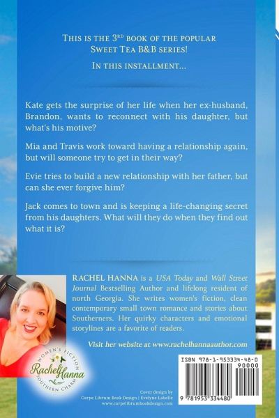 This is the 3rd book of the popular Sweet Tea B&B series!In this installment...Kate gets the surprise of her life when her ex-husband, Brandon, wants to reconnect with his daughter, but what's his motive?Mia and Travis work toward having a relationship again, but will someone try to get in their way?Evie tries to build a new relationship with her father, but can she ever forgive him?Jack comes to town and is keeping a life-changing secret from his daughters. What will they do when they find out what it is?