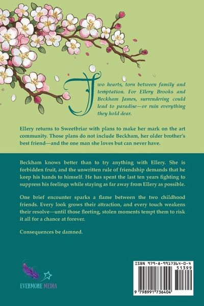 Two hearts, torn between family and temptation. For Ellery Brooks and Beckham James, surrendering could lead to paradise-or ruin everything they hold dear. Ellery returns to Sweetbriar with plans to make her mark on the art community. Those plans do not include Beckham, her older brother's best friend-and the one man she loves but can never have. Beckham knows better than to try anything with Ellery. She is forbidden fruit, and the unwritten rule of friendship demands that he keep his hands to himself. He has spent the last ten years fighting to suppress his feelings while staying as far away from Ellery as possible. One brief encounter sparks a flame between the two childhood friends. Every look grows their attraction, and every touch weakens their resolve-until those fleeting, stolen moments tempt them to risk it all for a chance at forever. Consequences be damned.