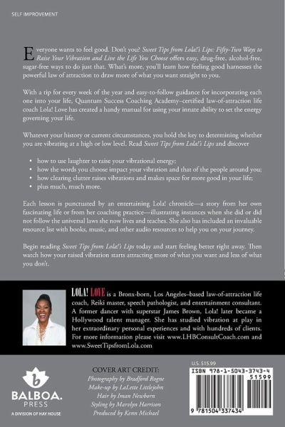 Everyone wants to feel good. Don't you? Sweet Tips from Lola!'s Lips: Fifty-Two Ways to Raise Your Vibration and Live the Life You Choose offers easy, drug-free, alcohol-free, sugar-free ways to do just that. What's more, you'll learn how feeling good harnesses the powerful law of attraction to draw more of what you want straight to you. With a tip for every week of the year and easy-to-follow guidance for incorporating each one into your life, Quantum Success Coaching Academy-certified law-of-attraction life coach Lola! Love has created a handy manual for using your innate ability to set the energy governing your life. Whatever your history or current circumstances, you hold the key to determining whether you are vibrating at a high or low level. Read Sweet Tips from Lola!'s Lips and discover ¿ how to use laughter to raise your vibrational energy; ¿ how the words you choose impact your vibration and that of the people around you; ¿ how clearing clutter raises vibrations and makes space for more good in your life; ¿ plus much, much more. Each lesson is punctuated by an entertaining Lola! chronicle-a story from her own fascinating life or from her coaching practice-illustrating instances when she did or did not follow the universal laws she now lives and teaches. She also has included an invaluable resource list with books, music, and other audio resources to help you on your journey. Begin reading Sweet Tips from Lola!'s Lips today and start feeling better right away. Then watch how your raised vibration starts attracting more of what you want and less of what you don't.