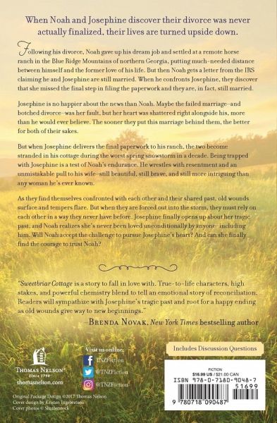 They thought their love story was over. They thought their divorce was final. They were wrong. Following his divorce, Noah gave up his dream job and settled at a remote horse ranch in the Blue Ridge Mountains of northern Georgia, putting much-needed distance between himself and the former love of his life. But then Noah gets a letter from the IRS claiming he and Josephine are still married. When he confronts Josephine, they discover that she missed the final step in filing the paperwork and they are, in fact, still married. Josephine is no happier about the news than Noah. Maybe the failed marriage--and botched divorce--was her fault, but her heart was shattered right alongside his, more than he would ever believe. The sooner they put this marriage behind them, the better for both of their sakes. But when Josephine delivers the final paperwork to his ranch, the two become stranded in his cottage during the worst spring snowstorm in a decade. Being trapped with Josephine is a test of Noah's endurance. He wrestles with resentment and an unmistakable pull to his wife--still beautiful, still brave, and still more intriguing than any woman he's ever known. As they find themselves confronted with each other and their shared past, old wounds surface and tempers flare. But when they are forced out into the storm, they must rely on each other in a way they never have before. Josephine finally opens up about her tragic past, and Noah realizes she's never been loved unconditionally by anyone--including him. Will Noah accept the challenge to pursue Josephine's heart? And can she finally find the courage to trust Noah? From the bestselling author of The Convenient Groom and A December Bride (now beloved Hallmark Original movies) comes this charming romance full of second chances and rekindled love. "Sweetbriar Cottage is a wonderful story, full of emotional tension and evocative prose." --Francine Rivers, New York Times bestselling author of Redeeming Love "Sweetbriar Cottage is a story to fall in love with. True-to-life characters, high stakes, and powerful chemistry blend to tell an emotional story of reconciliation." --Brenda Novak, New York Times bestselling author * Sweet and thoughtful contemporary romance * Stand-alone novel * Book length: 86,000 words * Includes discussion questions for book clubs