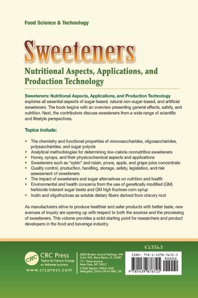 Sweeteners: Nutritional Aspects, Applications, and Production Technology explores all essential aspects of sugar-based, natural non-sugar-based, and artificial sweeteners. The book begins with an overview presenting general effects, safety, and nutrition. Next, the contributors discuss sweeteners from a wide range of scientific and lifestyle perspectives. Topics include: The chemistry and functional properties of monosaccharides, oligosaccharides, polysaccharides, and sugar polyols Analytical methodologies for determining low-calorie nonnutritive sweeteners Honey, syrups, and their physicochemical aspects and applications Sweeteners such as "sykin" and raisin, prune, apple, and grape juice concentrate Quality control, production, handling, storage, safety, legislation, and risk assessment of sweeteners The impact of sweeteners and sugar alternatives on nutrition and health Environmental and health concerns from the use of genetically modified (GM) herbicide-tolerant sugar beets and GM high fructose corn syrup Inulin and oligofructose as soluble dietary fibers derived from chicory root As manufacturers strive to produce healthier and safer products with better taste, new avenues of inquiry are opening up with respect to both the sources and the processing of sweeteners. This volume provides a solid starting point for researchers and product developers in the food and beverage industry.