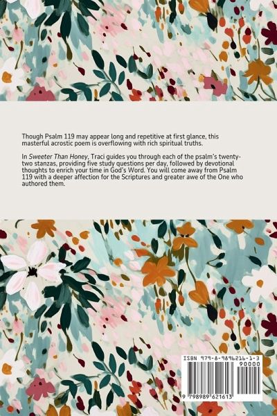 Though Psalm 119 may appear long and repetitive at first glance, this masterful acrostic poem is overflowing with rich spiritual truths. In Sweeter Than Honey, Traci guides you through each of the psalm's twenty-two stanzas, providing five study questions per day, followed by devotional thoughts to enrich your time in God's Word. You will come away from Psalm 119 with a deeper affection for the Scriptures and greater awe of the One who authored them.