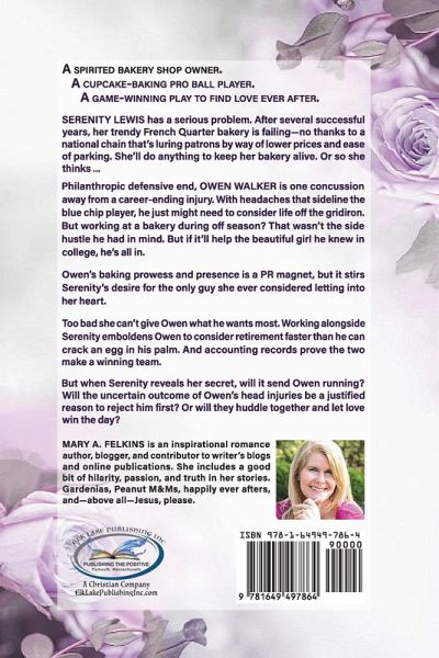 A spirited bakery shop owner. A cupcake-baking pro ball player. A game-winning play to find love ever after. SERENITY LEWIS has a serious problem. After several successful years, her trendy French Quarter bakery is failing-no thanks to a national chain that's luring patrons by way of lower prices and ease of parking. She'll do anything to keep her bakery alive. Or so she thinks ... Philanthropic defensive end, OWEN WALKER is one concussion away from a career-ending injury. With headaches that sideline the blue chip player, he just might need to consider life off the gridiron. But working at a bakery during off season? That wasn't the side hustle he had in mind. But if it'll help the beautiful girl he knew in college, he's all in. Owen's baking prowess and presence is a PR magnet, but it stirs Serenity's desire for the only guy she ever considered letting into her heart. Too bad she can't give Owen what he wants most. Working alongside Serenity emboldens Owen to consider retirement faster than he can crack an egg in his palm. And accounting records prove the two make a winning team. But when Serenity reveals her secret, will it send Owen running? Will the uncertain outcome of Owen's head injuries be a justified reason to reject him first? Or will they huddle together and let love win the day?