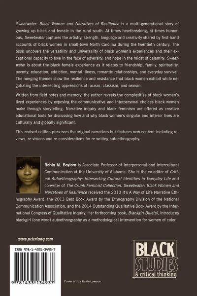 Sweetwater: Black Women and Narratives of Resilience is a multi-generational story of growing up black and female in the rural south. At times heartbreaking, at times humorous, Sweetwater captures the artistry, strength, language and creativity shared by first-hand accounts of black women in small-town North Carolina during the twentieth century. The book uncovers the versatility and universality of black women's experiences and their exceptional capacity to love in the face of adversity, and hope in the midst of calamity. Sweetwater is about the black female experience as it relates to friendship, family, spirituality, poverty, education, addiction, mental illness, romantic relationships, and everyday survival. The merging themes show the resilience and resistance that black women exhibit while negotiating the intersecting oppressions of racism, classism, and sexism.